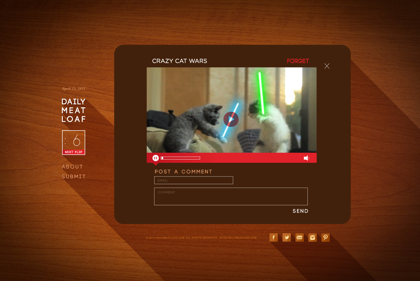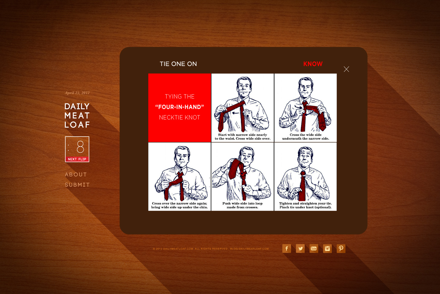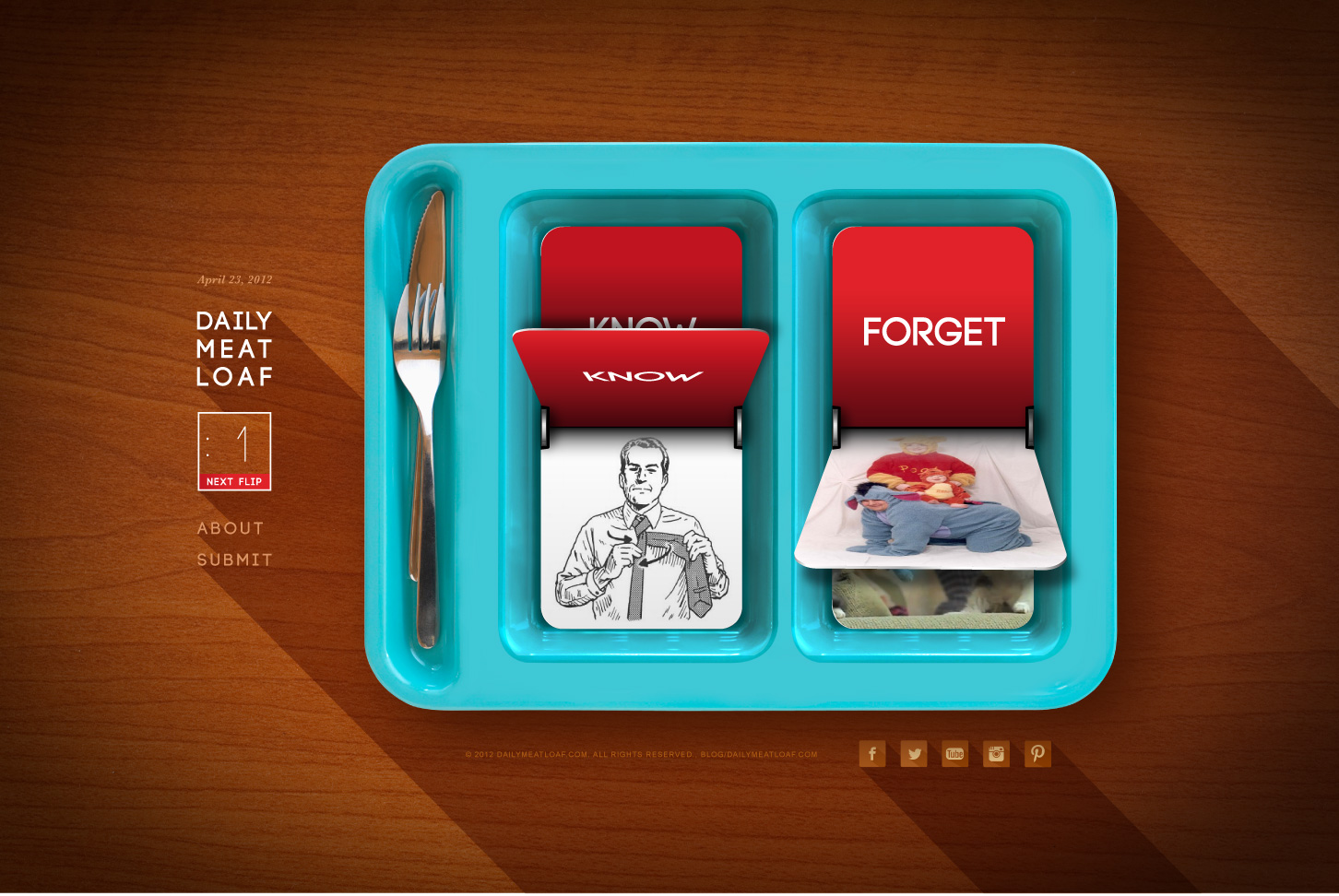 The Founders of Daily Meatloaf – a blog for men that posted useful advice and mindless content – were looking to evolve and grow their audience. So to highlight the juxtaposition of the content, viewers were now presented with a choice of needing to KNOW a bit of useful information or needing to FORGET some random snip. This was accomplished by creating a flip-card style of images that would change every 10 seconds. Enabling the viewers to become much more engaged, by selecting the content, as well as their overall experience.